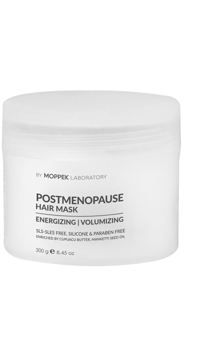 در دوران یائسگی تارهای نازک مو مستعد آسیب هایی همچون خشکی، وز و موخوره هستند و هنگام شست و شو بیشتر گره می خورند. ماسک POSTMENOPAUSE موپک، حاوی کره کوپوآکو و روغن گیاه مَنکِتی می باشد که به حالت پذیری، تغذیه کوتیکول ها و شانه پذیری بهتر موها کمک می کند. این فرمولاسیون سبک و غیرسیلیکونی، تارهای مو را به صورت عمقی آبرسانی و هیدراته می نماید. هیدراته کردن، از خشکی، وز و شکستگی تارها جلوگیری نموده و به جوانسازی موها می انجامد.